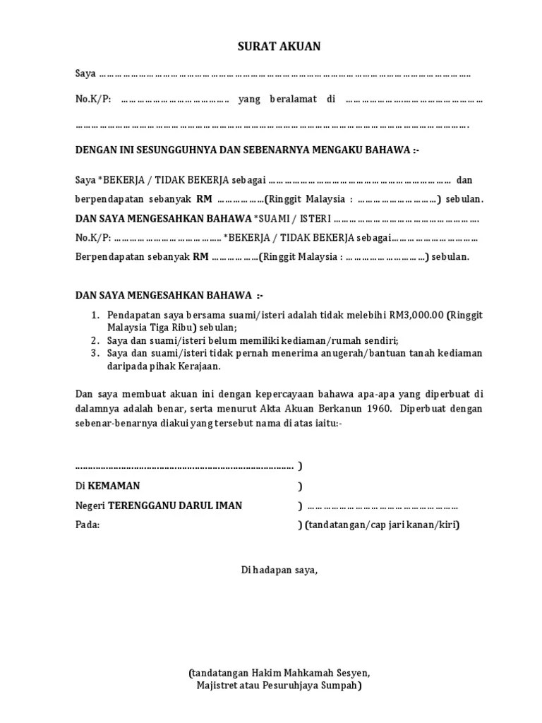 Surat akuan sumpah tiada slip gaji / tidak bekerja. Pesuruhjaya sumpah/ jkkk / penghulu / ketua kampung/ kakitangan kategori a. Moshims borang akuan sumpah tidak bekerja. Adakah orang lain boleh mewakili deponen di dalam sesuatu surat akuan ? For more information and source see on this link. Contoh surat akuan pengesahan pendapatan . Di mana seharusnya seorang pesuruhjaya sumpah menjalankan perkhidmatannya?